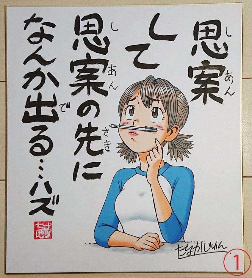 New! たなかじゅん先生 【ナッちゃん 名言(?)】直筆カラーイラストサイン色紙①